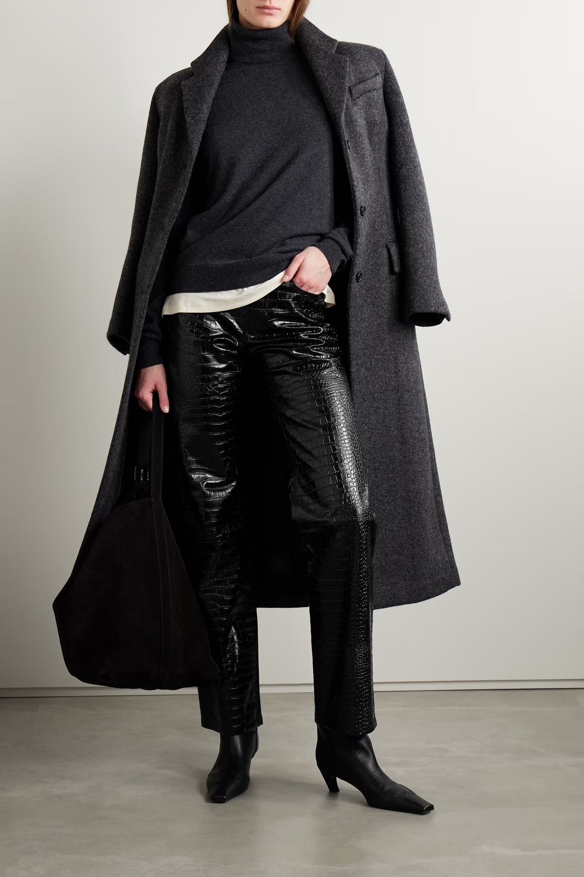 The Frankie Shop Bonnie Croc-Effect Faux Leather Straight-Leg Pants