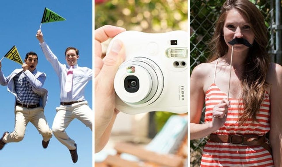2. Photo Booth Pennants: Teehee! These pennant flags add an instant party vibe to any situation. Use them in photos, to prompt people in photos, or just carry them around like you are the president of OMG.