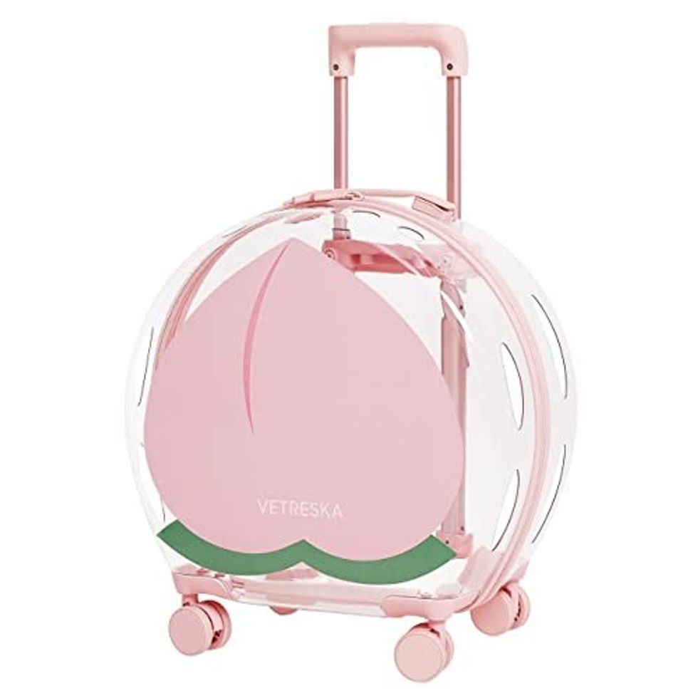 This adorable pet trolley case is by far the most fashionable way to transport your pet around. It comes with different stickers that you can decorate it with to personalize it to your (or you pet's) preferences.
