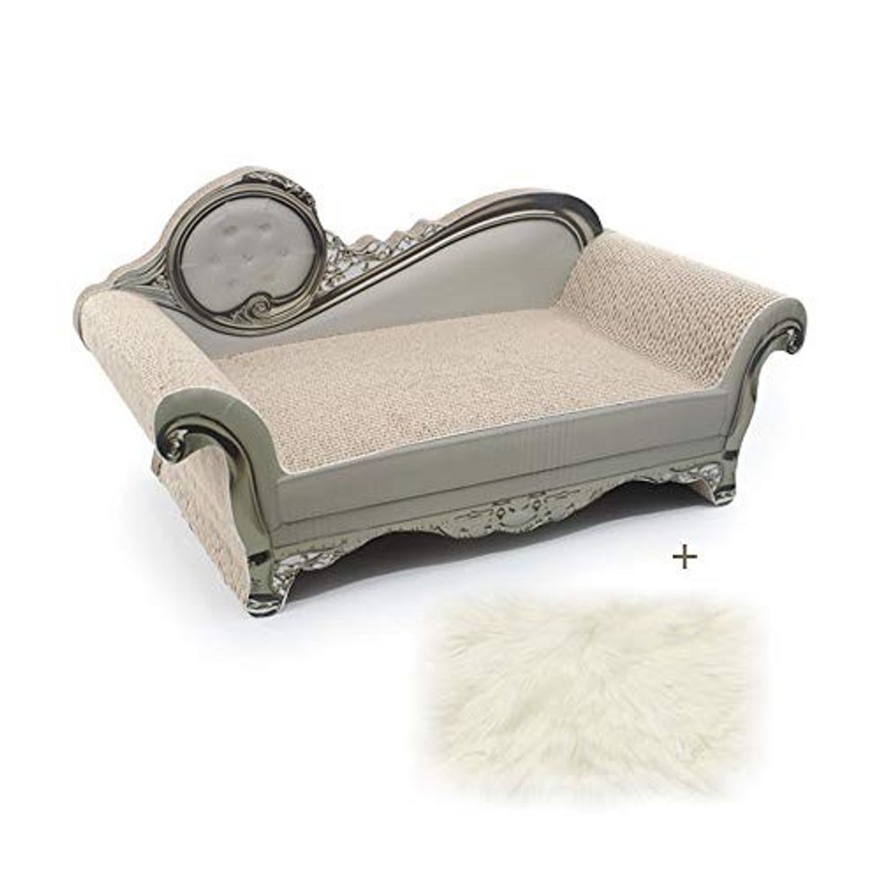 This bougie Cat Scratcher Sofa will release your cat's inner diva. The cat scratcher is made from sturdy cardboard and includes a faux fur mat.