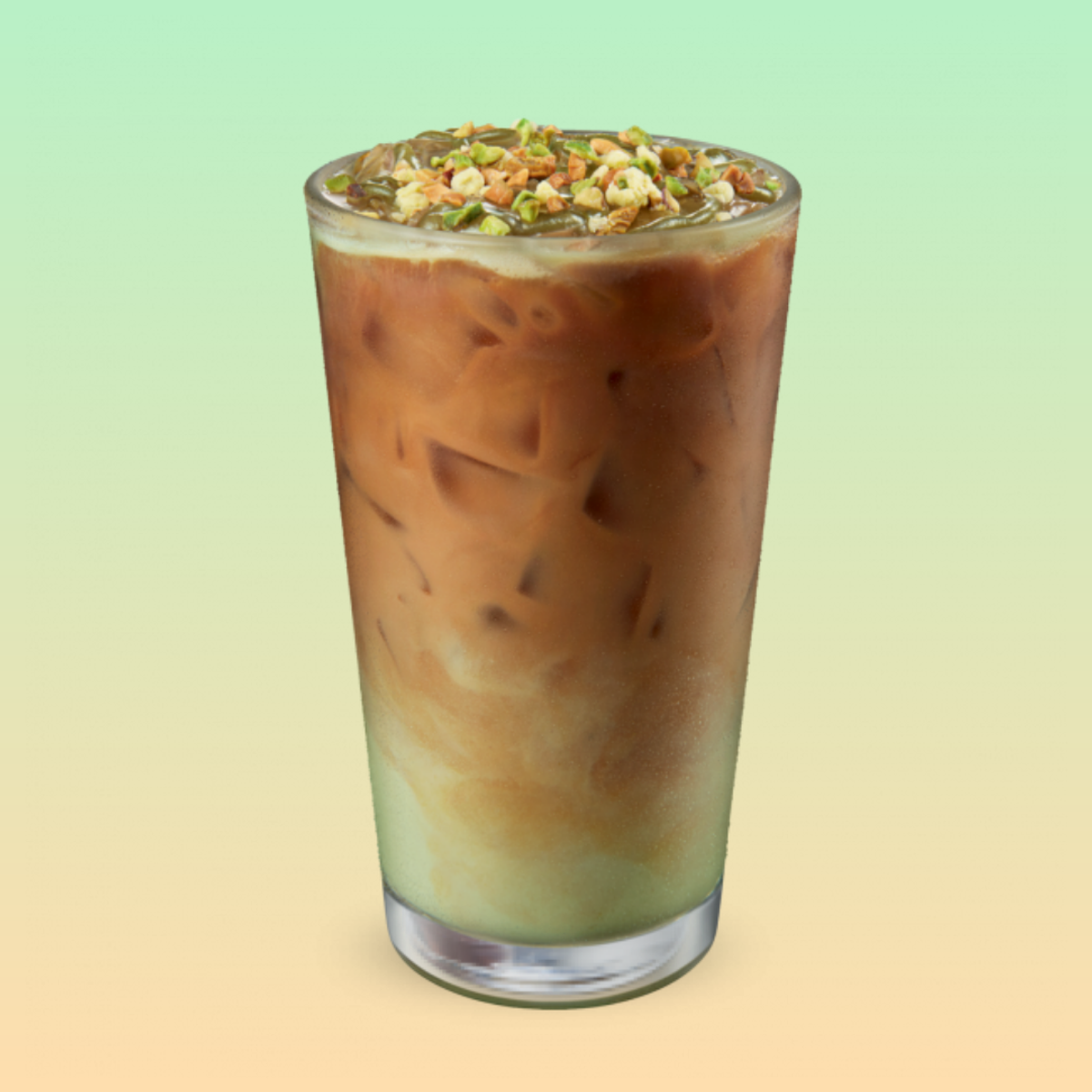 Creamy pistachio and white chocolate blend together with Starbucks espresso in this cool drink from Australia. Crunchy pistachio pieces and pistachio sauce adorn this lovely drink from down under.