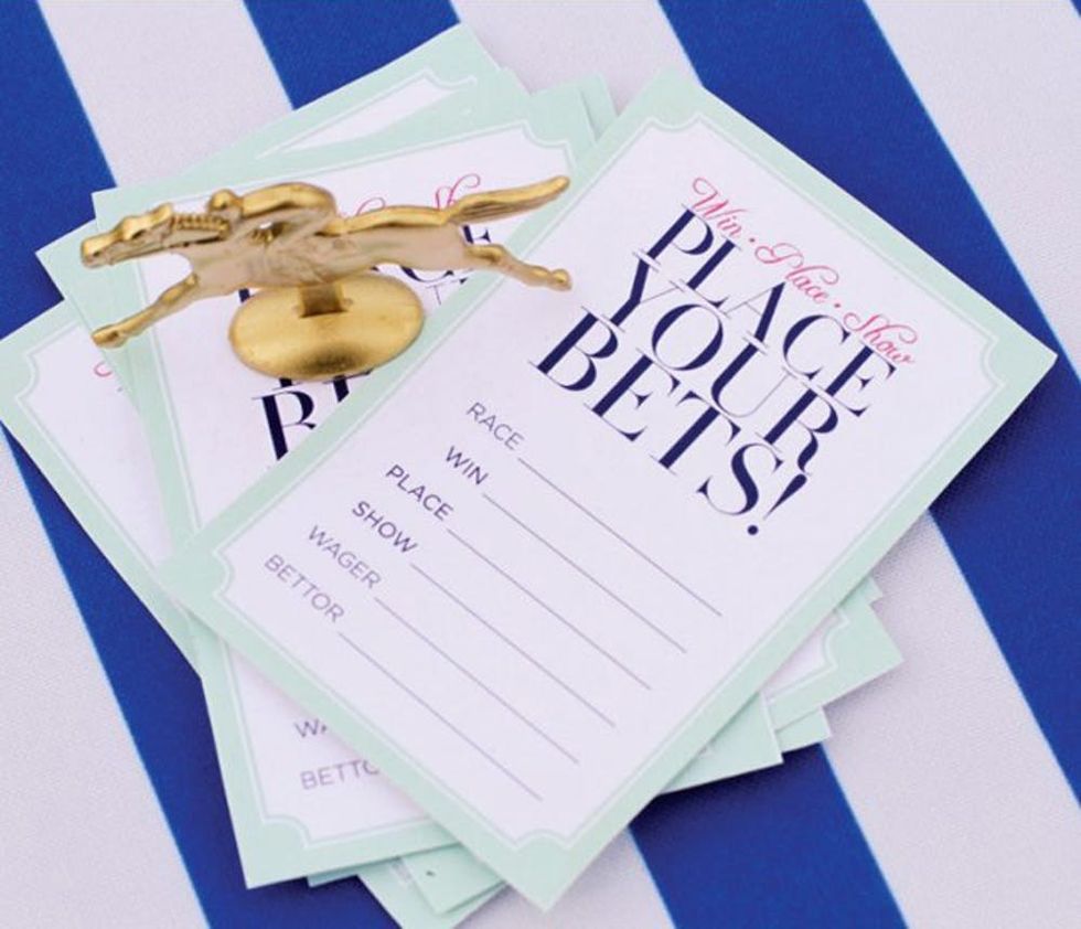 3. Download some colorful betting cards. Too-cute Derby betting cards up the ante — and when you go with printables (like this adorable option) no one has to know you didn’t get them set weeks in advance! (via Hostess With the Mostess)