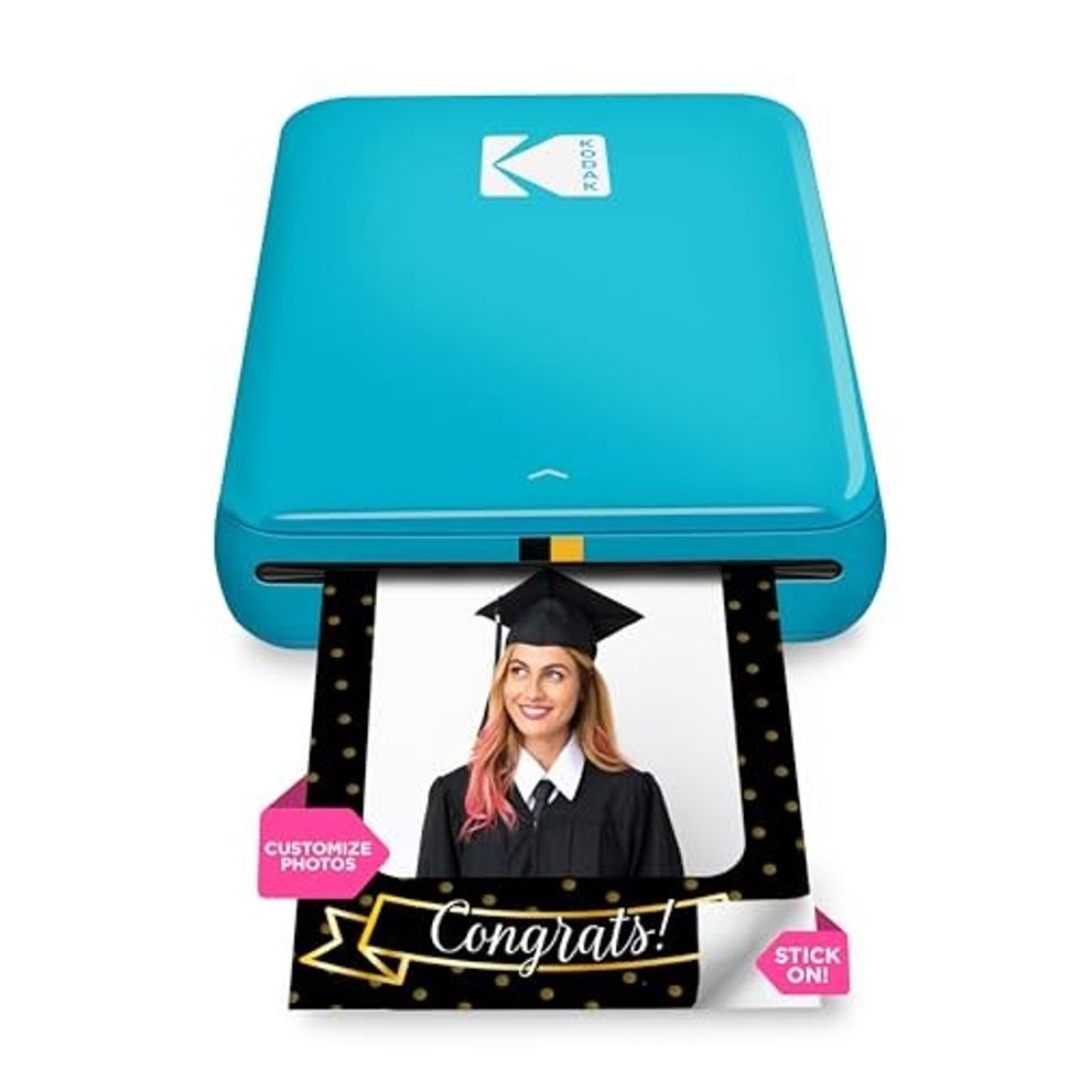 Print memories instantly with the KODAK Step Instant Smartphone Photo Printer. This portable mini printer produces 2x3” sticky-back photos and is Bluetooth-compatible with iOS and Android devices, making it easy to edit and print on the go.
