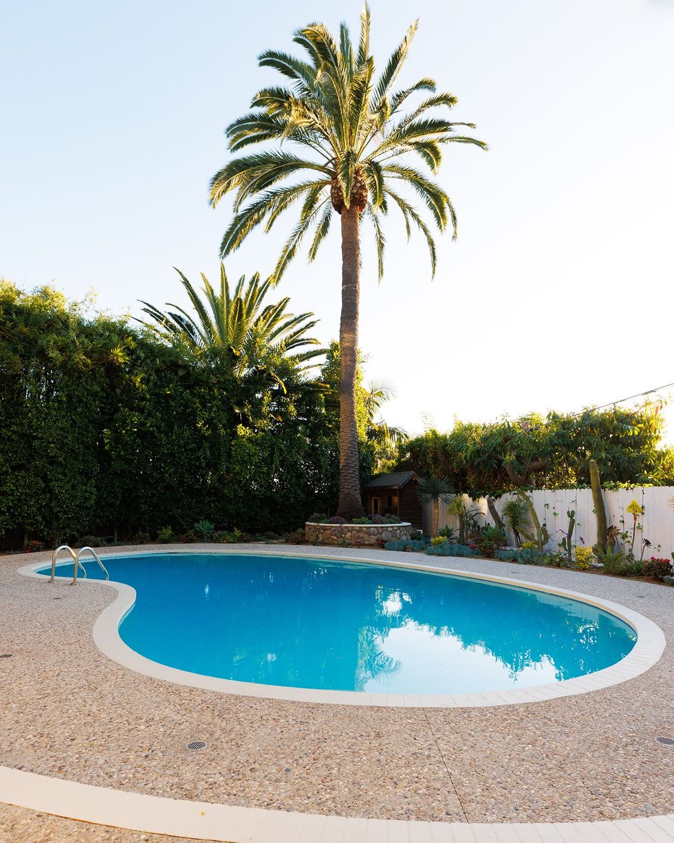 Meredith preserved the retro kidney-shaped pool and resurfaced the surrounding area while planting around to keep it clean and modern.