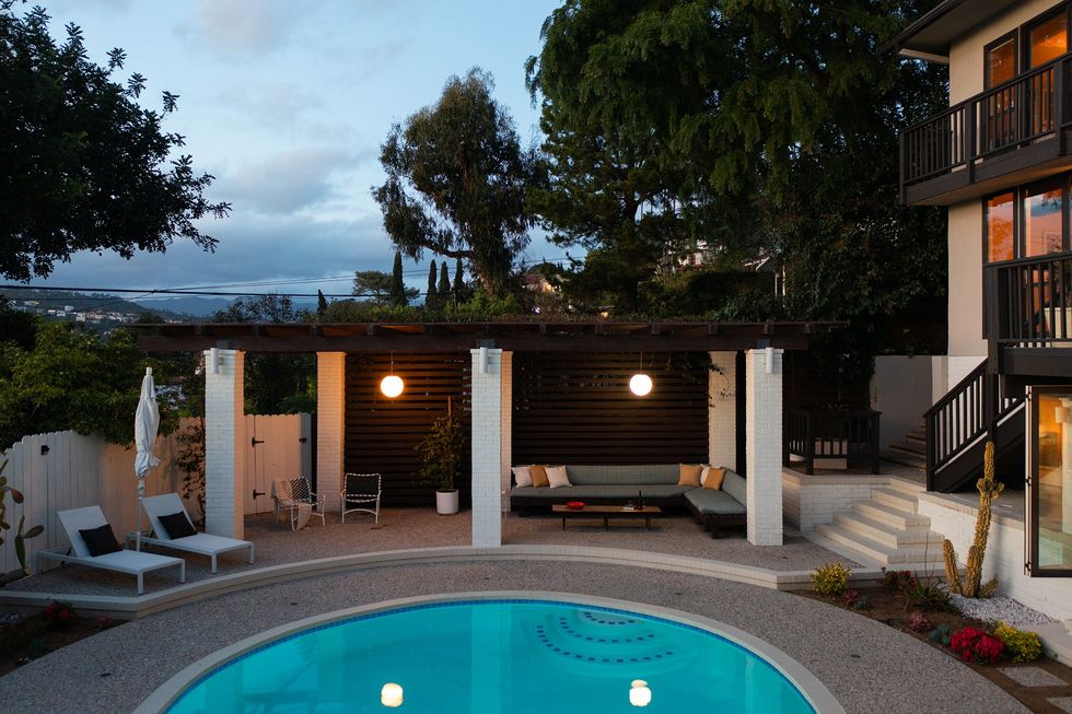 Inspired by its mid-century roots, designer Meredith Kleinman reimagined the Los Angeles home for Nick O'Malley, bassist for the band Arctic Monkeys, and his family, preserving a lot of the mid-century details while adding in modern amenities. Here's a peek inside, along with mid-century pool decor to refresh your outdoor space.