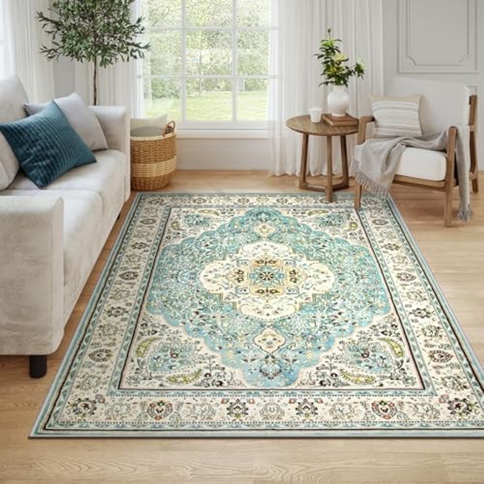 Add a touch of vintage elegance to your bedroom or living room with this washable floral medallion area rug. Its soft texture and timeless design effortlessly elevate any space, creating a warm, inviting atmosphere.