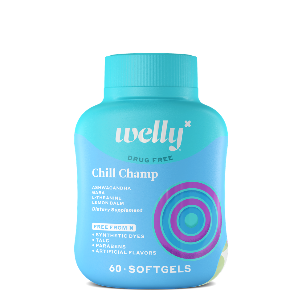 Find It In: Welly Chill Champ, an herbal stress-soothing supplement featuring Ashwagandha, GABA, L-Theanine and Lemon Balm to support a non-drowsy calm.*