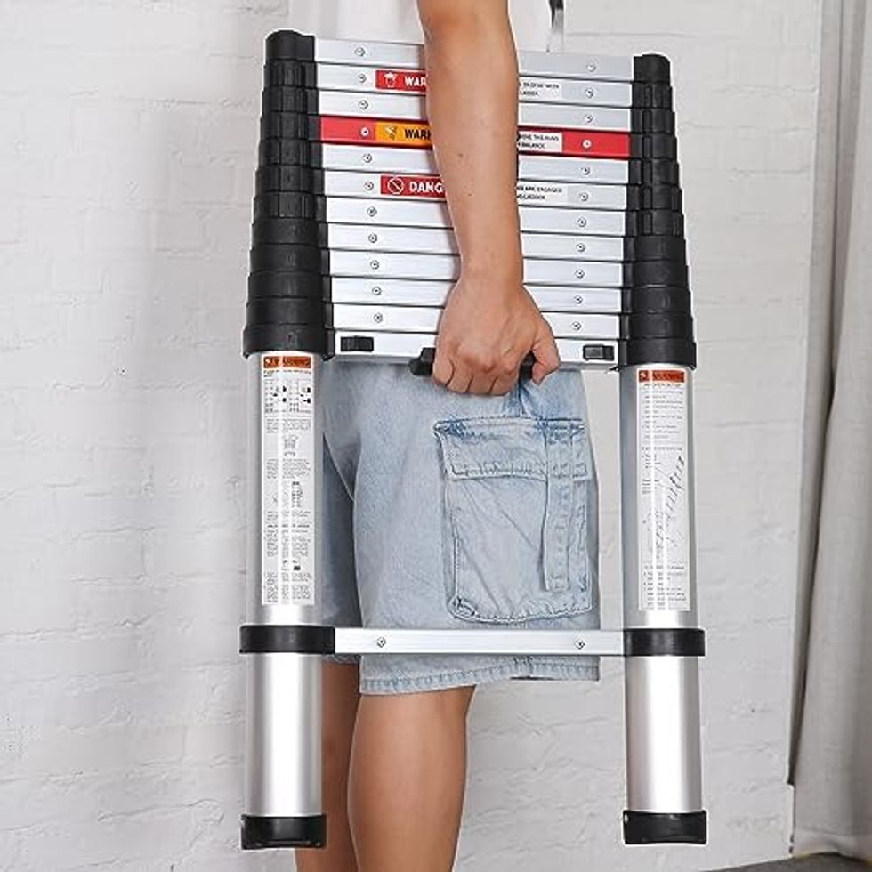 Forget carrying a long ladder and lift a short one that extends like the telescoping ladder. It is sturdy, making it a reliable standing spot when you are doing work up high.
