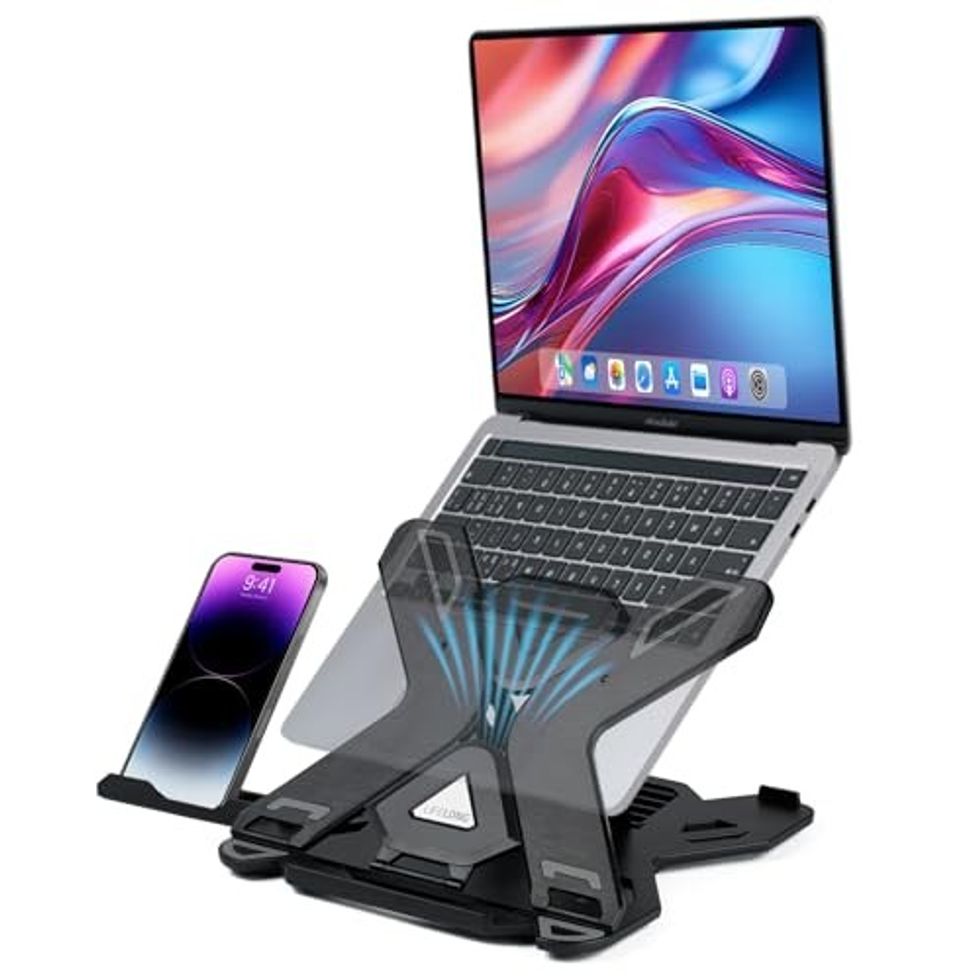 The Lifelong laptop stand is a game-changer for those who spend hours in front of a computer. Compatible with laptops from 10 to 17 inches, it offers multiple heights and angles, plus a 360-degree rotation for easy screen sharing. The bonus? A built-in slot for a phone.