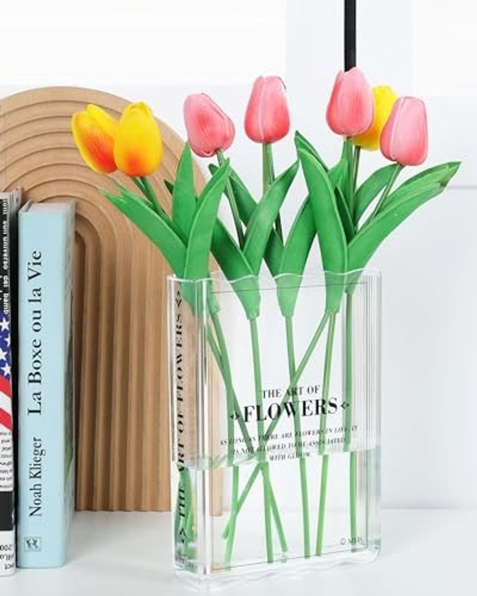 Say hello to the hottest and trendiest new vase. There is no denying that this book-shaped flower vase is absolutely everywhere nowadays. For the perfect trendy addition to your home, add your weekly bouquet to this clear acrylic book vase.