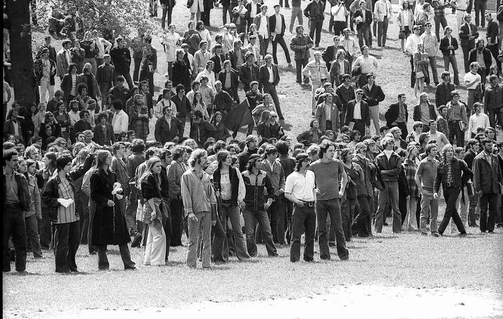 Kent State: Protests around the country were covered globally, but one protest, in particular, shook the nation and once again called attention to the dangers students sometimes face when agitating for progressive causes. In May of 1970, a crowd of students at Kent State in Kent, Ohio assembled to protest the US invasion of Cambodia. Kent State administrators were aware of a rally students had been planning and officially forbade the protest, and called in the National Guard to control the demonstration.