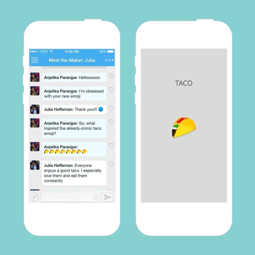 But, what’s behind all these genius emoji? Especially the taco!? I sat down with emoji-maker Julia over a cross-country GroupMe chat (obvs!) to get the scoop on her creative process. And spoiler alert: You are definitely going to start using GroupMe more, if only to use the taco and unicorn emoji ;)