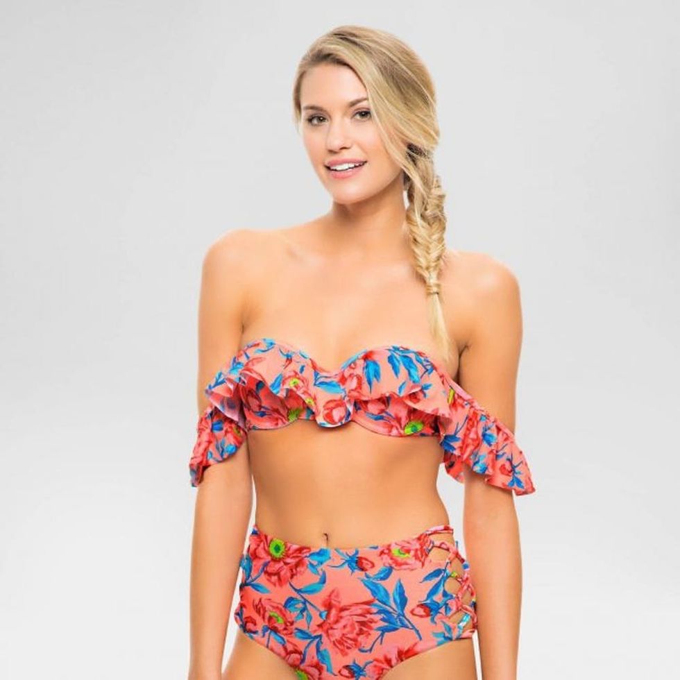 13. Bardot-Inspired Flounce: Too much off-the-shoulder flounce? No such thing. Grab some Hawaiian leis and a fruity cocktail for spring break round two. Complete your Bachelor in Paradise-inspired look with a fishtail braid and a sun-kissed glow. Brit + Co Pick:Tori Praver Seafoam Floral Off the Shoulder Underwire Bikini Top in Bright Mango ($35)