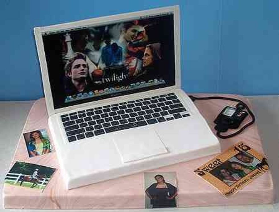 Macbook Cake – Yep, that’s right. A Macbook cake with a Twilight theme. It would be 10x cooler if they embedded an actual iPad in there and played the movie while they served the cake.