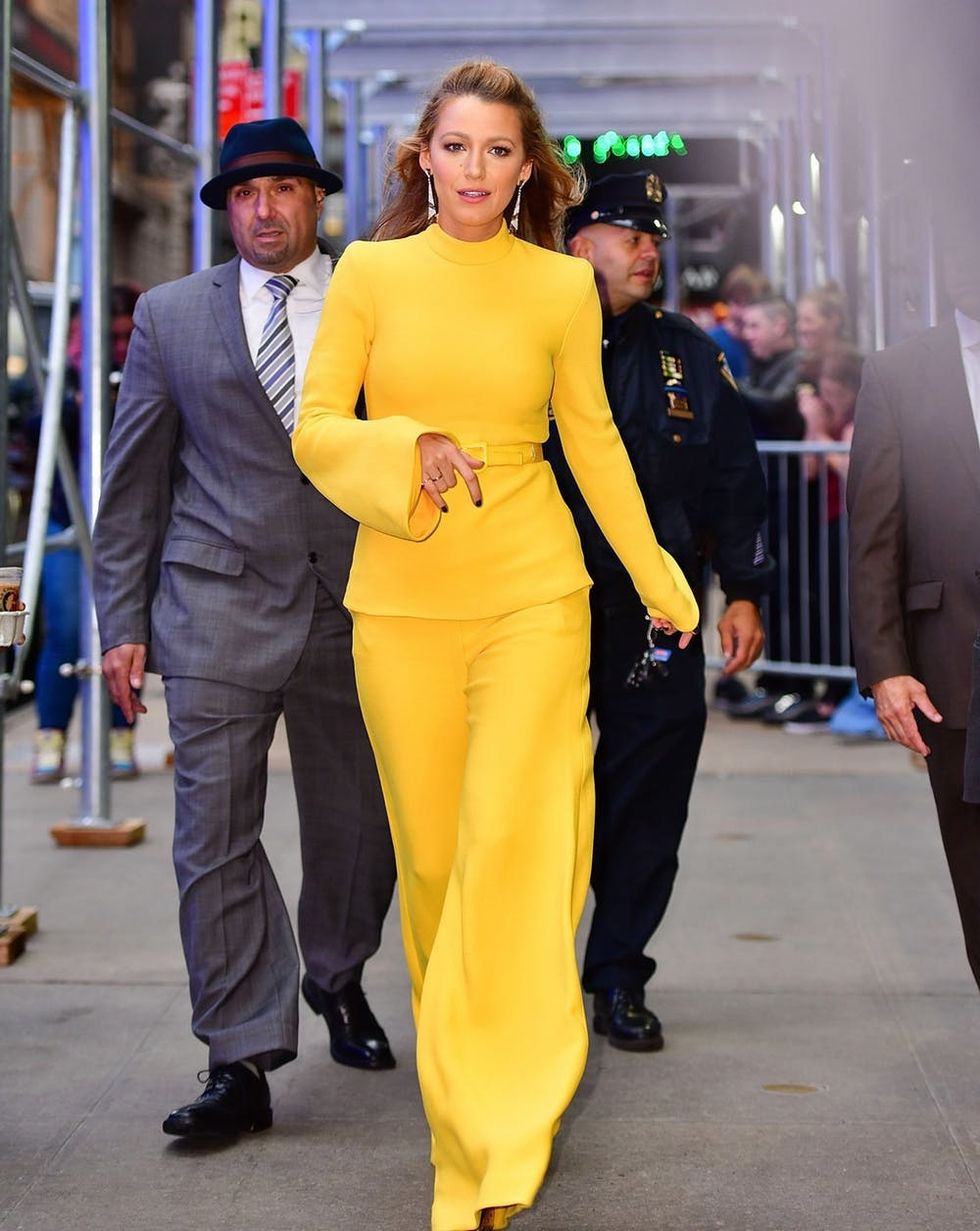 5. Blake Lively: The Rhythm Section actress managed to literally stop traffic while clad in a head-to-toe yellow Brandon Maxwell getup of a vintage-inspired turtleneck and coordinating wide-leg pants last October. (Photo via James Devaney/Getty)