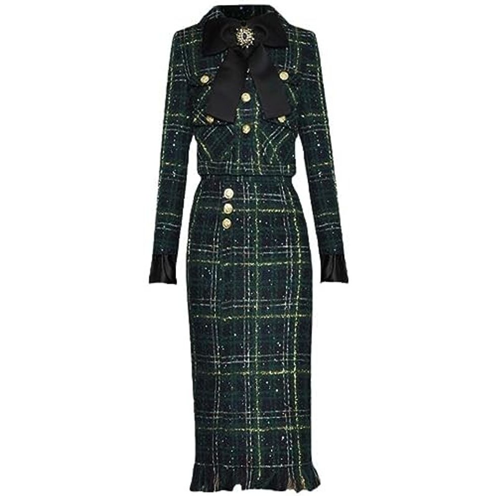 See it on AmazonThis Plaid Tweed Skirt Suit Jacket + Tassel Skirt 2 Pieces Set Will Turn Heads