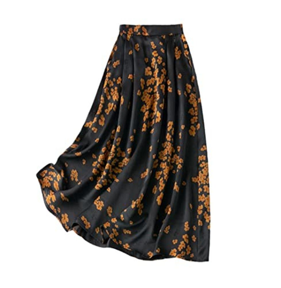 See it on AmazonThe Vintage Light Luxury Jacquard Silk Elastic Waist Pocket Fragmented Flower Skirt is Timeless