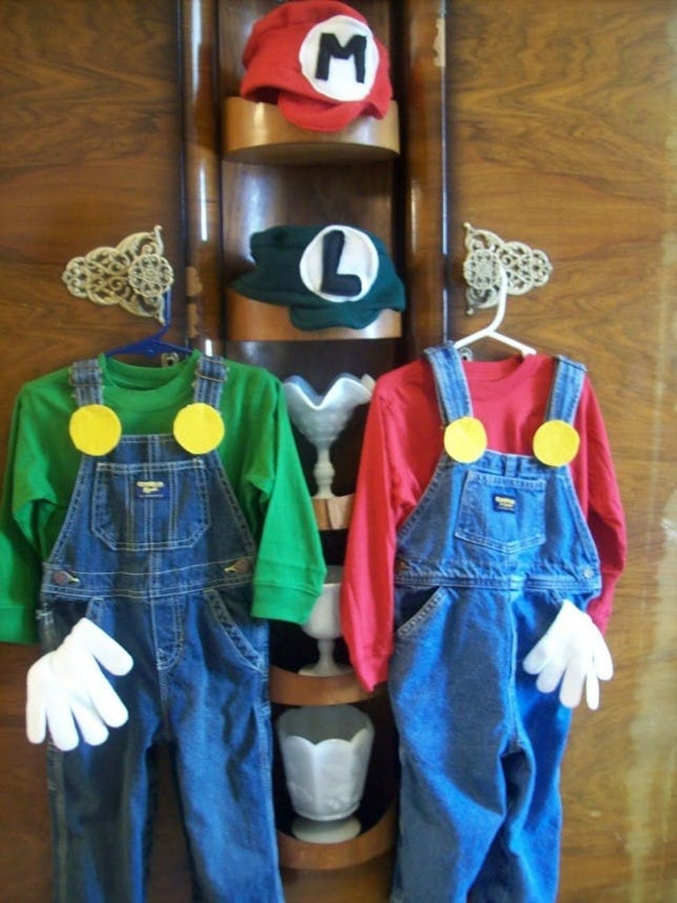 Mario and Luigi are the ultimate pair. Just grab some old overalls (or find some at a thrift store), a train hat, and add felt!