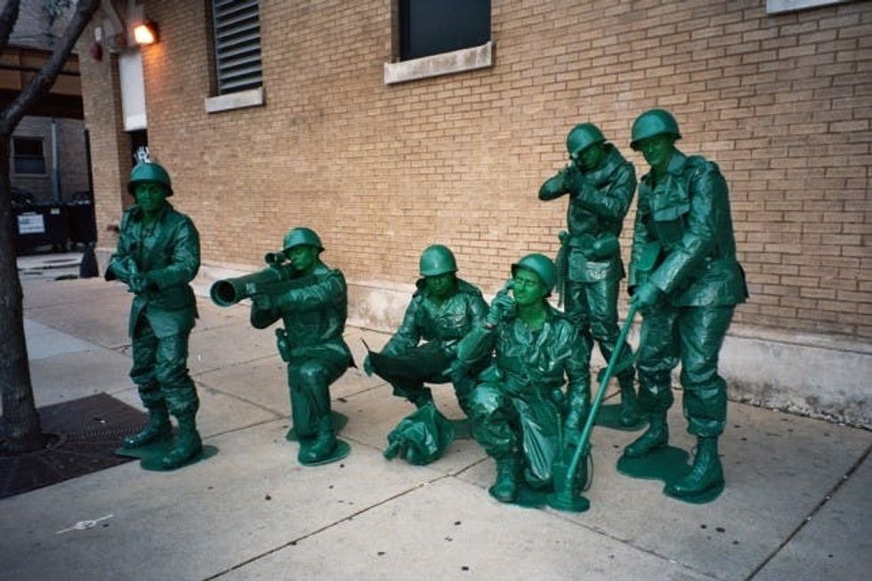 We can’t stop thinking about Toy Story. These army men costumes could be recreated using a lot of green paint, duct tape, and dye. Just beware of breakouts from your clogged pores. Whatever, it’s worth it to look this great.
