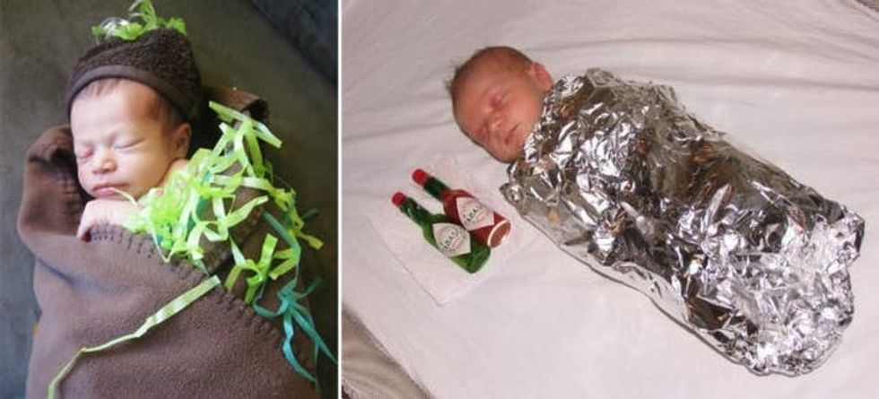 Warning: do not eat the baby. This burrito baby is too cute for words. Though, we’d love to see a little salsa mixed in here.