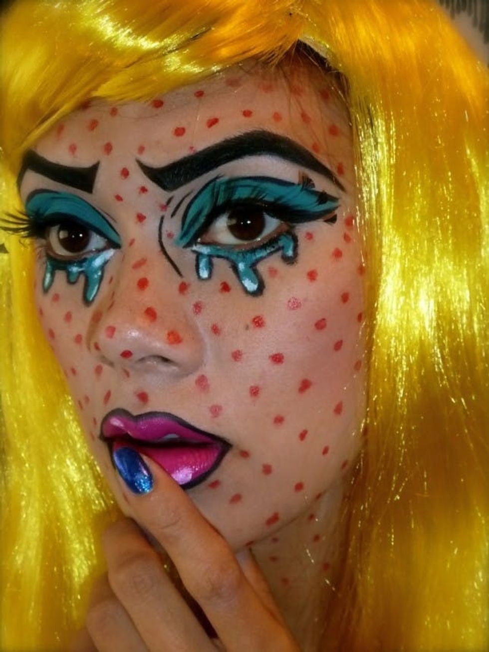 This one is all about the makeup… and the bright wig. Pair it with a little black dress and you’re set.
