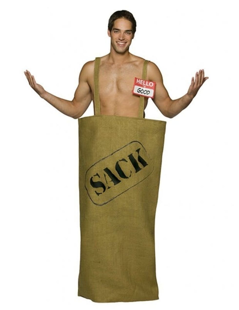 Draw laughs from all your friends with this costume. Just find an old burlap sack or make one using your sewing machine and a couple yards of burlap. Then, create a “Hello I’m Good” name tag to wear on your shoulder. Don’t have time to make? You can also buy this one on Amazon.
