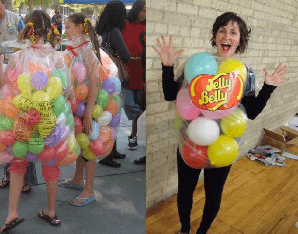 One of the simplest of the “bunch,” these jelly bean costumes take nothing but balloons and garbage bags to make. Easy peasy.