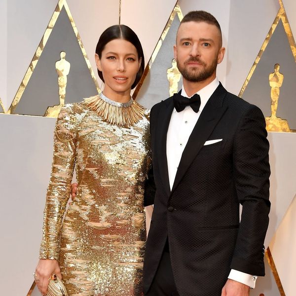 10. Jessica Beil + Justin Timberlake: In her gold and glitzy Kaufmanfranco frock, Biel was Timberlake’s very own Oscar, making him the biggest winner of all. (Photo via Steve Granitz/Getty)