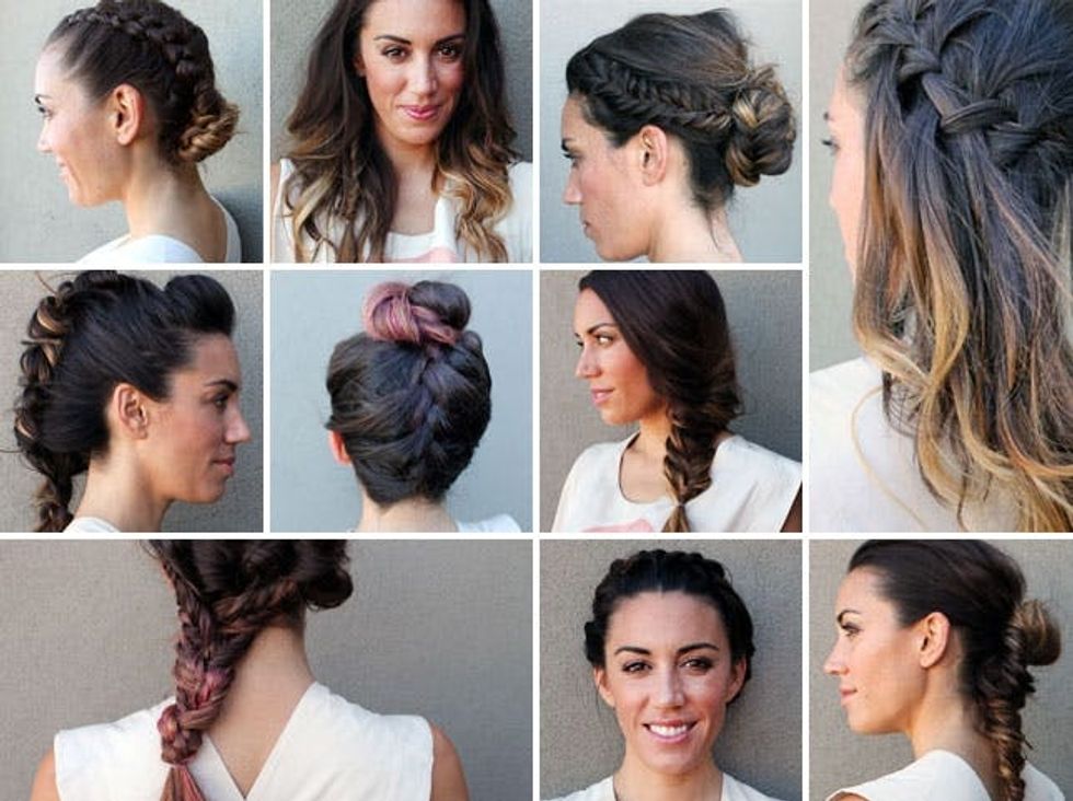 You read that right. French. Braid. Fauxhawk. This is definitely the edgiest one on our list and certainly makes a statement. We started here for inspiration. Make a pomp and pin it in the center of your head. Start braiding (inside out french braiding, that is) directly behind the pomp. Instead of adding hair to the top of the braid, you add it underneath. complete all the way down. Use a comb to pull out each section of the braid giving it the appearance of a mohawk.