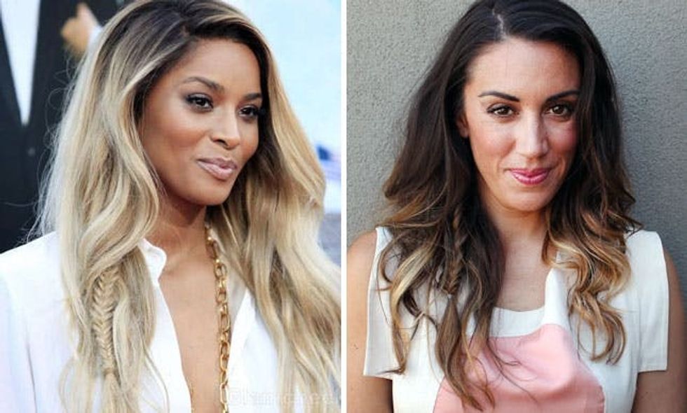 For this look, we were inspired by a shot of Ciara Harris rocking blond ombre locks with a sneaky little fishtail braid thrown into the mix. This is definitely a mermaid look, and is light and flirty. Simply style your hair down as your normally would with a little extra curl. Braid a small section of hair into a fishtail, pull out to loosen the braid a bit, and you’re done. Seal off with a clear elastic.