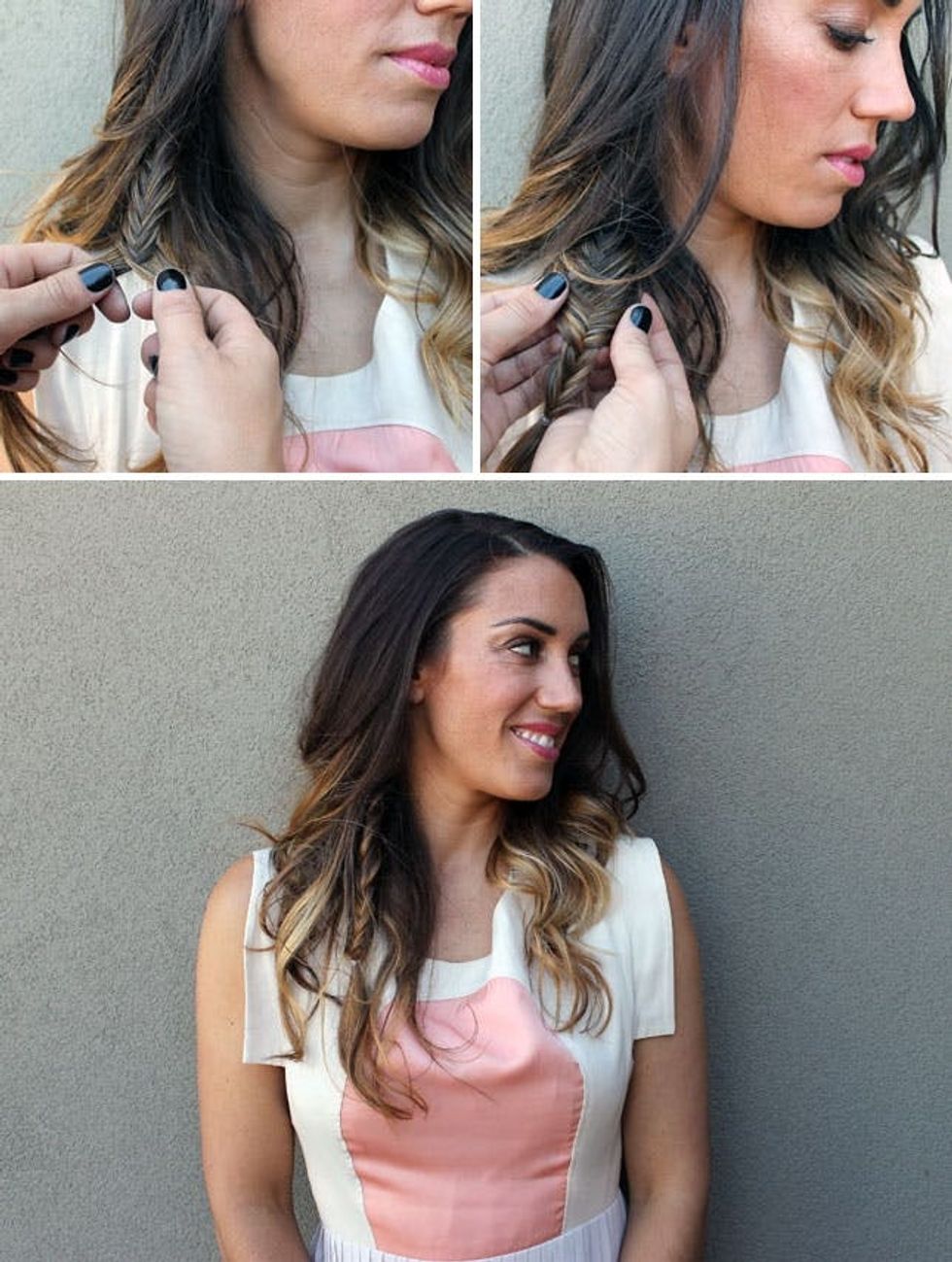 For the braid, make three fishtail braids, and then braid together in the traditional braid style. Done!