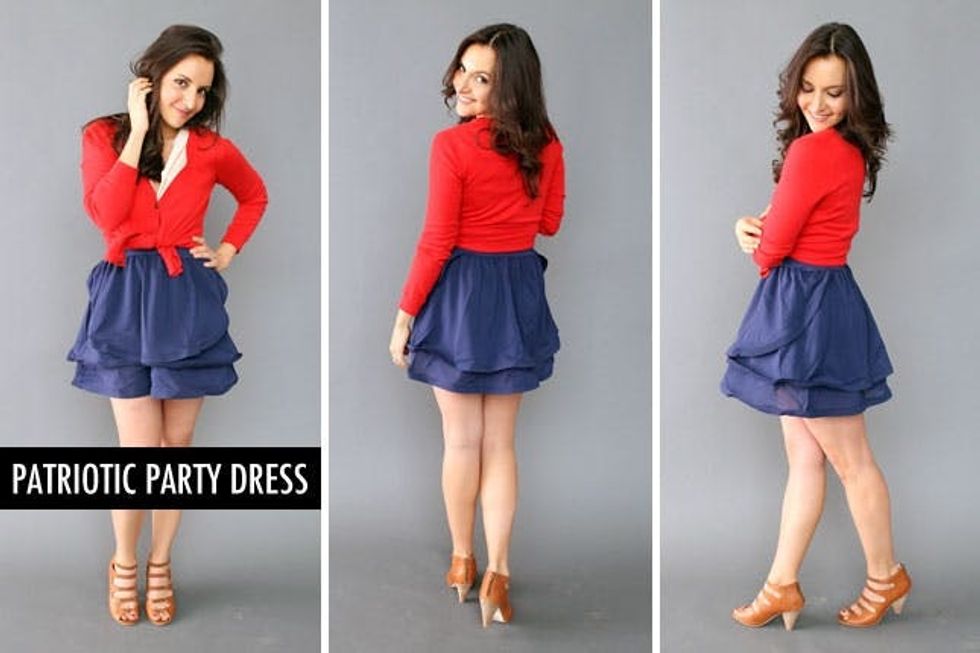 6. Patriotic Party Dress: We think Michelle Obama would approve of this rather patriotic look. We simply tied our cardigan up over a dress to give it a playful look, while still keeping things formal enough for cocktail hour.