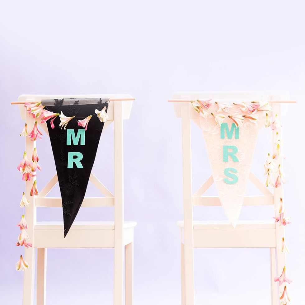 7. Customize your bridal decor. You or a friend getting hitched? Turn this Design a Banner Kit ($16) on its side to make a special throne just for the newlyweds.