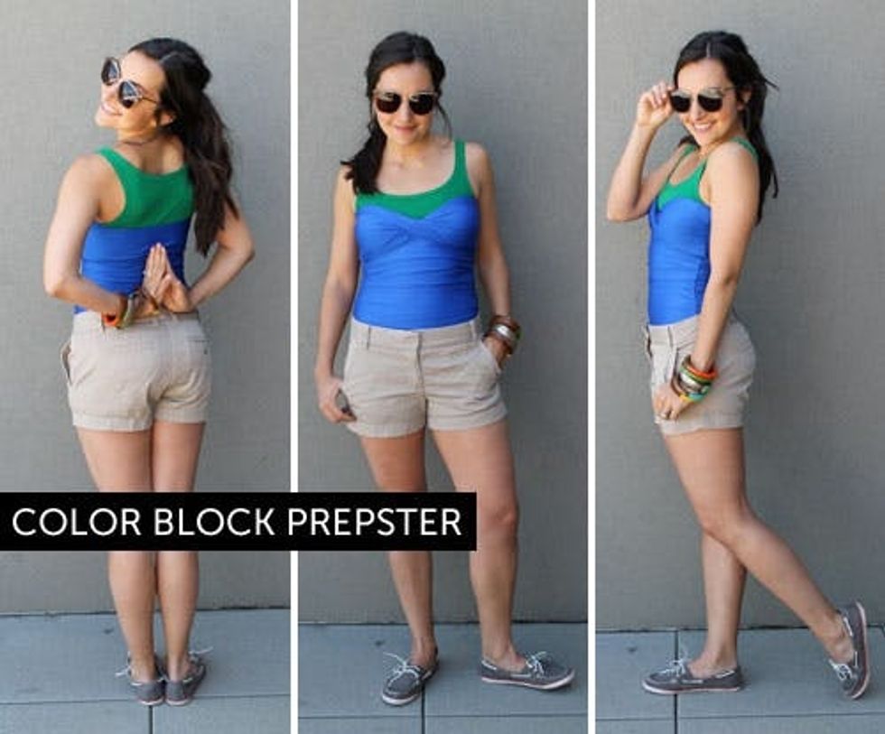 Yeah yeah yeah, you get that we're really into color blocking. Why not throw a brightly colored tank under your one piece? Complete the look with khaki shorts and a classic pair of boat shoes.