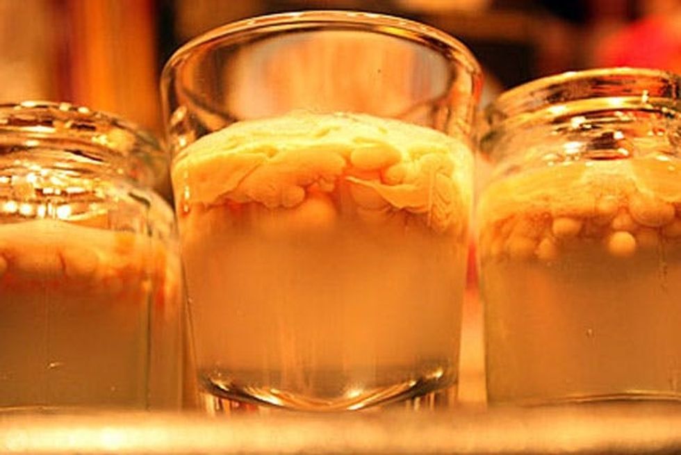 7. Brains!: These shots combined peach schnapps, lime juice, and Bailey’s with rather curdling results. (Recipe and photo: Not Martha)