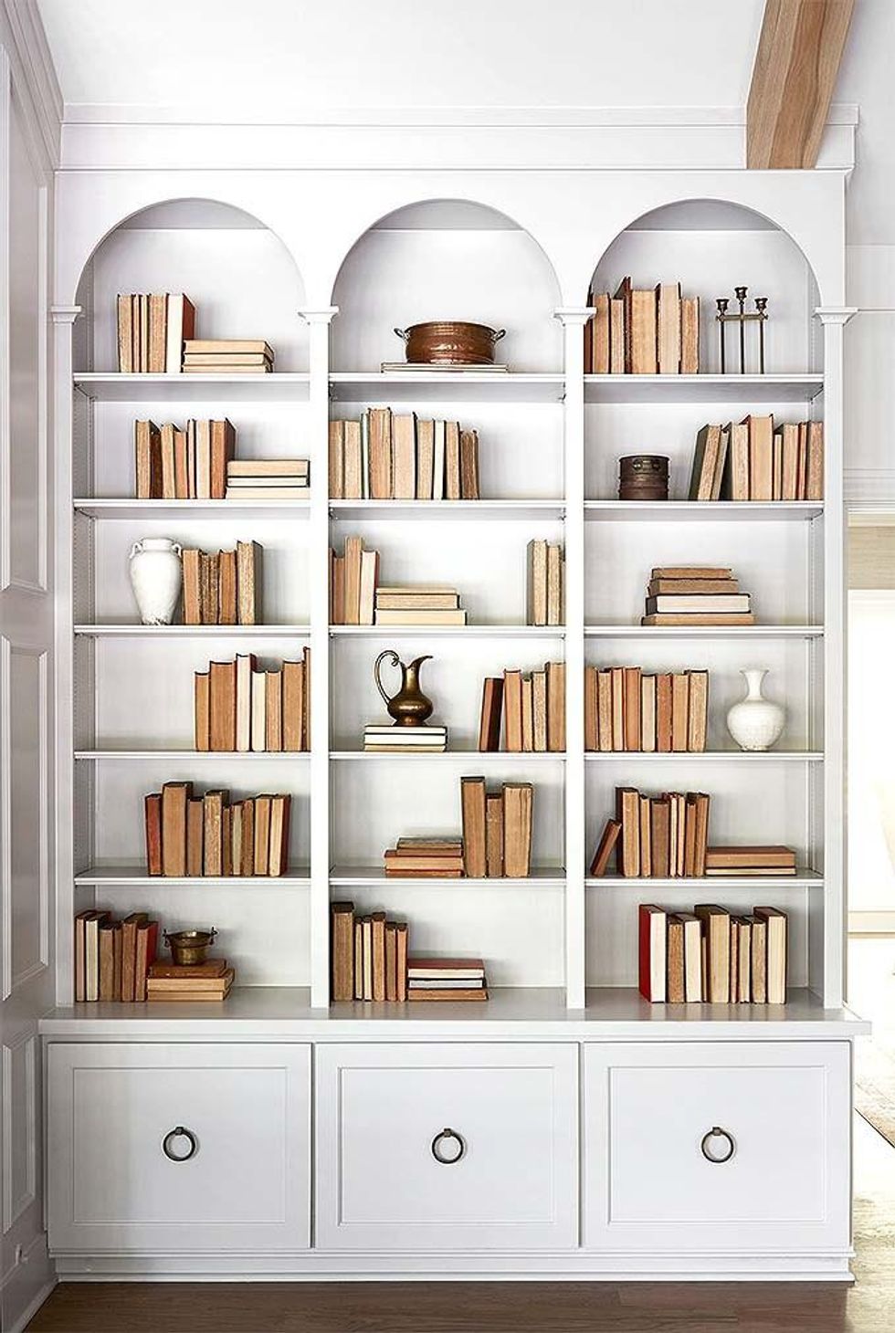 10. Color Complements: If an abundance of colorful books is cramping your monochromatic style, simply turn 'em around. Voila! Aesthetic harmony. (via Posh Pennies)