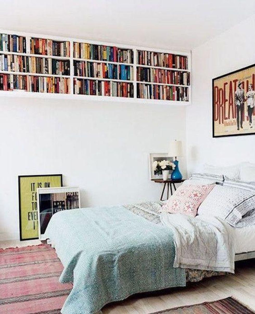 6. Get High: Just as you can take advantage of the oft-overlooked lower part of your room, the highest parts of your space can work storage magic too. If you have a ton of books to store but don’t want to sacrifice all of your wall art real estate, hang ’em high so that both your books and your art can have their moment. (via Domino)