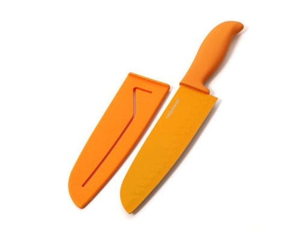 11. Resin Santoku Knife with Sheath ($9): What would a super colorful cutting board set be without a bright orange Santoku knife? You can get away with using this knife for pretty much everything you could possibly want to cut. We love that it comes with a matching sheath so you can chef-ify even an impromptu picnic.
