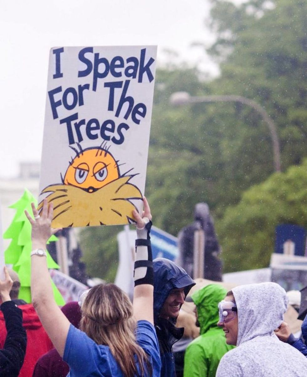 7. The Lorax’s Plea: Dr. Seuss’s old Earth-loving pal The Lorax made an appearance too, saying, “I speak for the trees.” (Photo via Jessica Kourkounis/Getty)