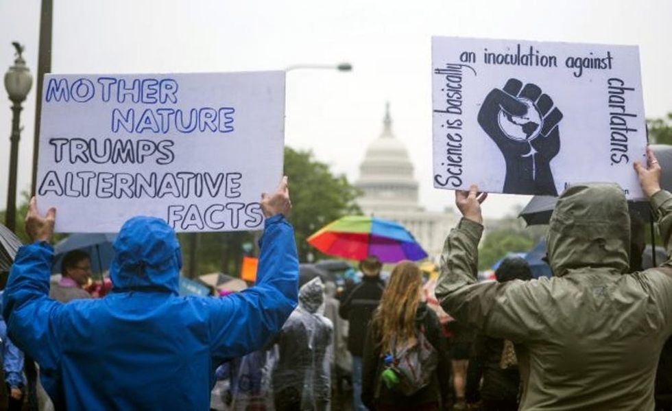 8. Stranger Than Fiction: A gentle reminder that science is a far cry from the fiction we see in movies and books came from this Boston marcher. (Photo via Scott Eisen/Getty)