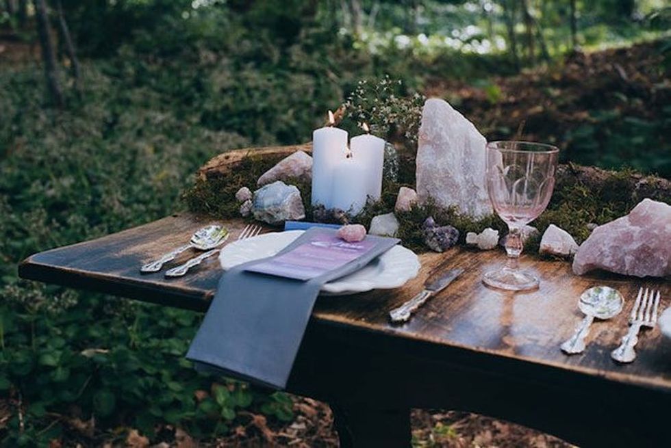 2. Geode Woodland Wedding: First came the geode cakes, now entire weddings are embracing those earthy feels with natural stones galore. Mix and match varying colors of quartz with a woodland backdrop and your day will be on fleek. (via Lauren Pretorius Photography / Confetti Daydream)