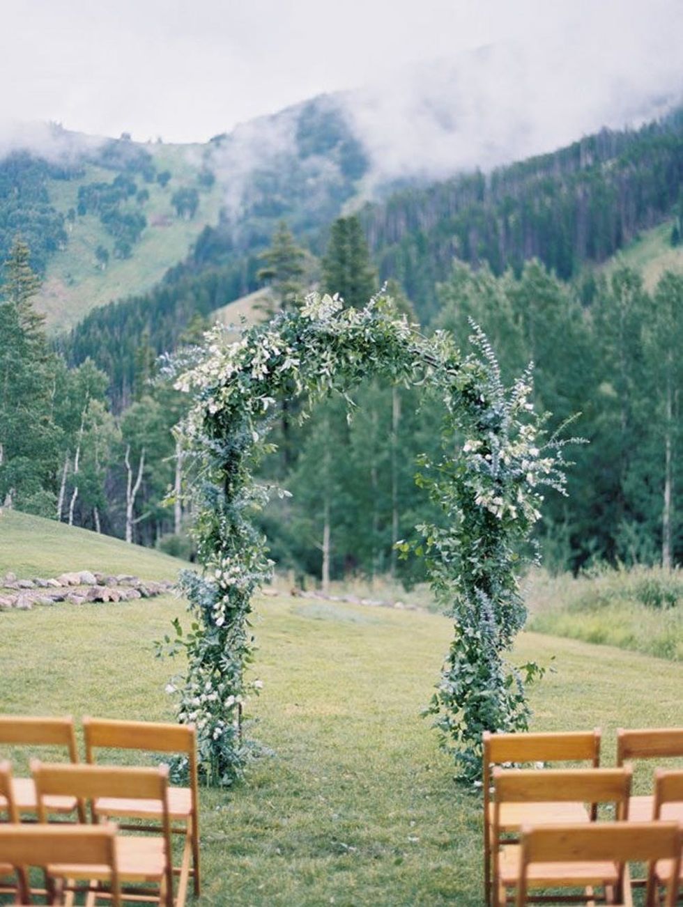 7. Mountaintop Retreat: The best part about this theme is you really don’t need to overthink a thing — your surroundings will do *all* the talking. Plus, with Greenery being Pantone’s color of the year, you’ll definitely score some major style points. (via Winsome and Wright / Style Me Pretty)
