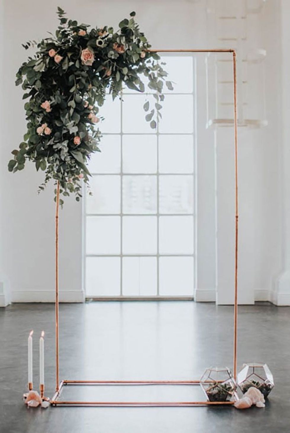 12. Industrial Minimalist: Less is more, especially in industrial spaces. If you’re planning on hosting your nuptials in a loft, you don’t need many props to make your theme known. Pair with copper piping and a few complementary terrariums for a perfectly polished look. (via Bai and Elle / Want That Wedding)