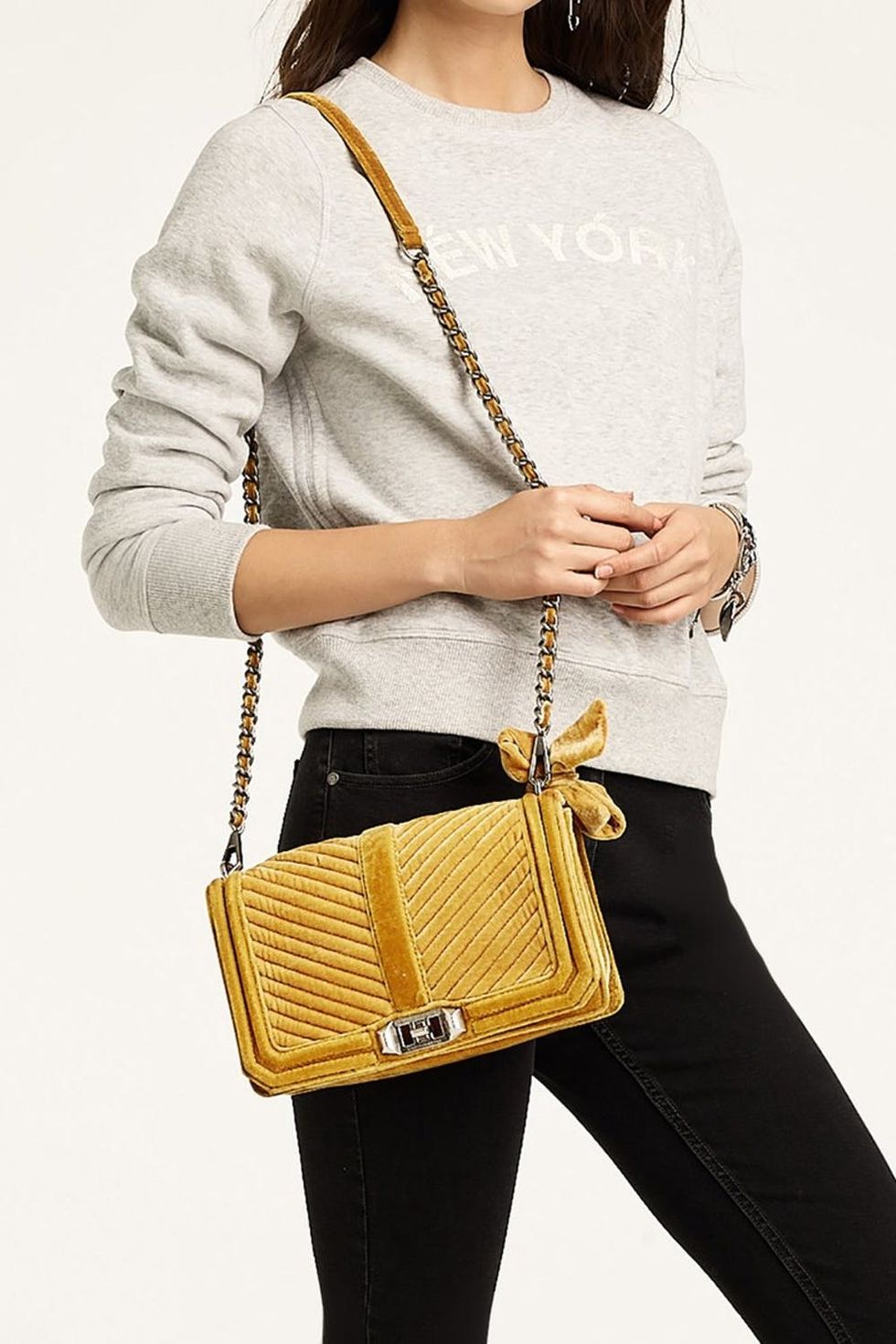 10. Rebecca Minkoff Velvet Chevron Quilted Love Crossbody ($295): Get your weekend uniform squared away (off-duty sweatshirt, check), starting with this luxe gold velvet convertible clutch that can be dressed up or down.