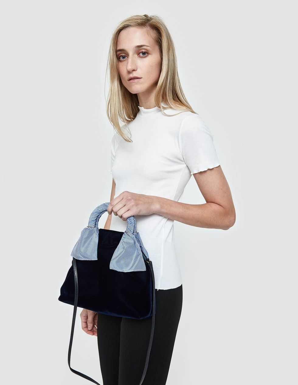 11. Trademark Hazel Velvet Shopper ($548): We can spot a sartorial exclamation point a mile away. Trust that this navy bow-adorned shoulder bag, complete with gingham accent handles, will accompany you on your next uptown adventure.