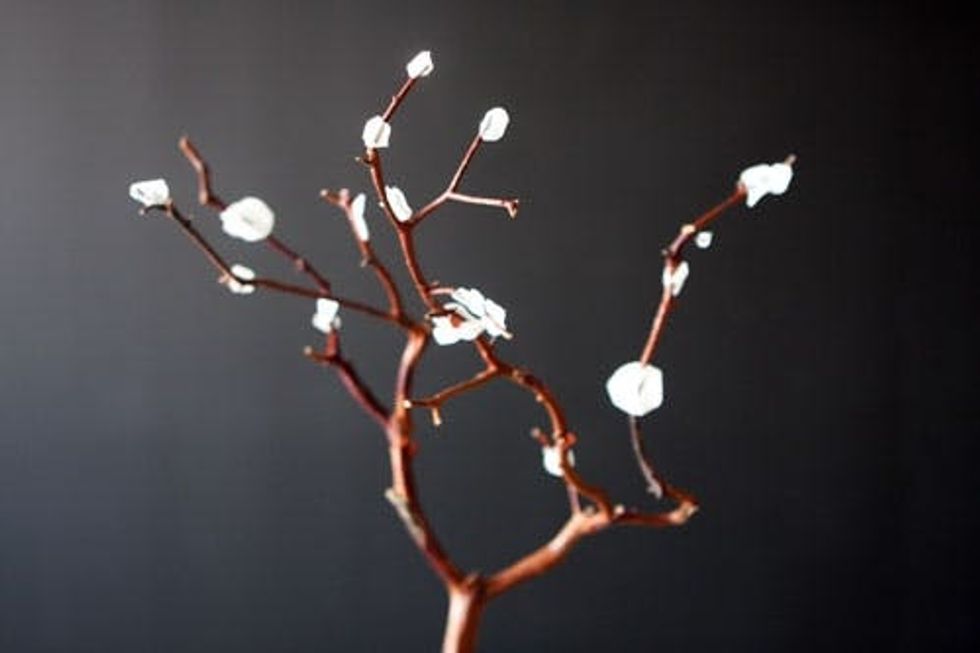 8. Winter Blossom Centerpiece: It is indeed almost spring, but our plants are still looking pretty blossomless. Fake a cherry blossom look by cutting coffee filters into tiny circles and gluing onto a twig.