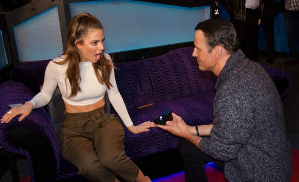 2. Colton Haynes and Jeff Leatham: In what was perhaps the most dramatic proposal on our list, Jeff Leatham enlisted the one and only Cher herself to help him ask fiancé and Teen Wolf actor Colton to marry him: He played a personalized video of the songstress addressing the duo and singing “I Got You Babe” (the couple’s favorite song), before playing a montage of messages from other friends and family members (which also included Melanie Griffith and Serena Williams). THEN — because apparently that wasn’t impressive enough — Leatham orchestrated a freakin’ fireworks display set to the tune of “Marry You” by Bruno Mars. Oh. Em. GEE.