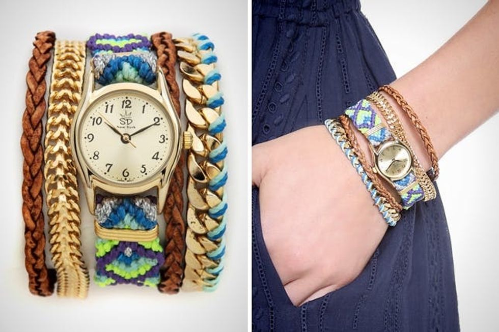 5. Bright Woven Magnetic Watch ($262): The mix of metal, woven thread, and leather in this bracelet is jaw dropping. The colors make it stand out and the magnetic clasp is genius. Pair this statement piece with neutrals or navy.