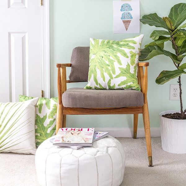 2. DIY Palm Print Pillows: Bring the allure of nature indoors with these charming palm print pillows. Stick to its natural green color or, if you’re feeling bold, experiment with an unconventional pop of a different hue. (via Dream Green DIY)