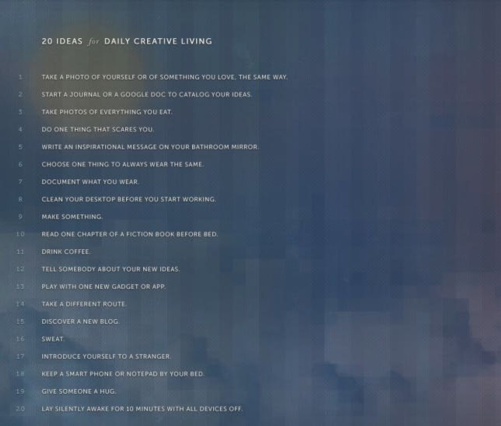 And, in case you missed it last year, here are our creative resolutions from 2012, sure to inspire some good creative energy in 2013 as well. Did any of you follow through on any of these?